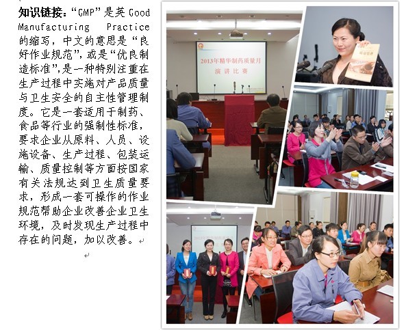 在第十次“質(zhì)量月”活動(dòng)中,精華制藥于10月25日,開展了GMP自檢活動(dòng)和以“質(zhì)量締造品牌,品牌提升效益”為主題的演講比賽
