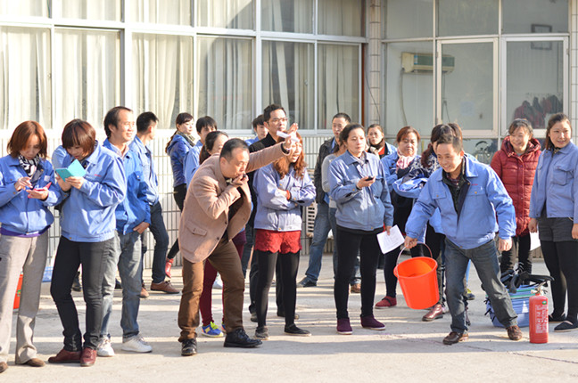 12月6日下午 ,隨著毛明輝副總經(jīng)理的一聲哨響,一場(chǎng)別開(kāi)生面的消防運(yùn)動(dòng)會(huì)在南通海盟服裝有限公司火熱開(kāi)賽。該運(yùn)動(dòng)會(huì)是南通海盟服裝有限公司組織的第五屆消防運(yùn)動(dòng)會(huì),來(lái)自公司的9支代表隊(duì)在提水桶、搬運(yùn)塑料簍及衣架、搬運(yùn)滅火器、迅速火盆滅火聯(lián)手接力賽項(xiàng)目上展開(kāi)比拼。