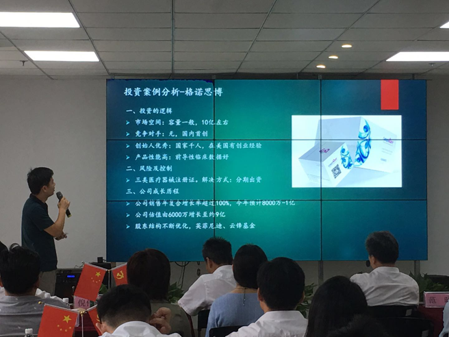 活動上,天演資本投資總監(jiān)張建介紹了投資基本知識及典型投資案例,南通牛觸信息科技有限公司、南通林格自動化系統(tǒng)工程有限公司負責人分別作了“數(shù)字化工廠”以及“激光觸控技術(shù)的衍生設(shè)備研發(fā)”項目推介。在座員工活學活用,充分發(fā)表意見,與企業(yè)做了深入溝通與交流,投資專家也對項目作出點評,給予了指導和建議。最后,產(chǎn)研院總經(jīng)理范昹對本次活動給予總結(jié),并對所有員工提出了殷切希望,要求產(chǎn)研院全體員工以“不忘初心、牢記使命”主題教育活動為契機,牢牢把握此次學習機會,充分利用投資沙龍活動提高自身的業(yè)務(wù)水平,以項目經(jīng)理人為目標,切實增強會看項目、懂項目、分析項目的能力,不斷拓展產(chǎn)研院投資渠道,推動產(chǎn)研院實現(xiàn)更高質(zhì)量發(fā)展。
