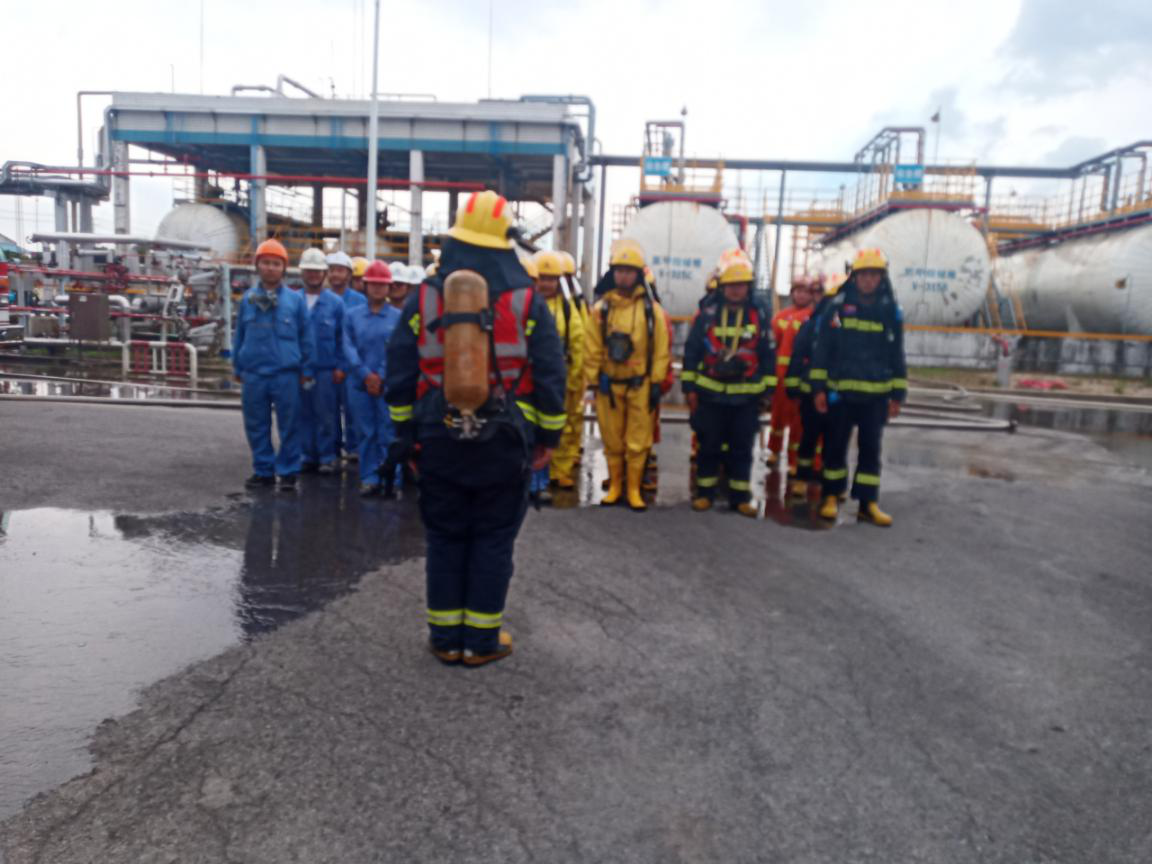 公司安全部聯(lián)合開發(fā)區(qū)消防中隊,組織氯甲烷泄漏演練,提高了員工的應急處置能力。