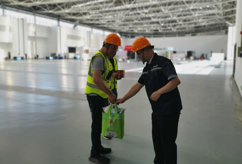 孫濤在國際會議中心詳細(xì)詢問了員工項目現(xiàn)場工作推進(jìn)情況,并送來了飲料、毛巾、花露水等防暑降溫物資。孫濤代表公司對員工不畏高溫、盡職負(fù)責(zé)的辛勤工作表示衷心感謝,并叮囑大家在高溫天氣務(wù)必做好防暑降溫工作,既要完成工作,更要確保身心健康,時刻注意施工安全。